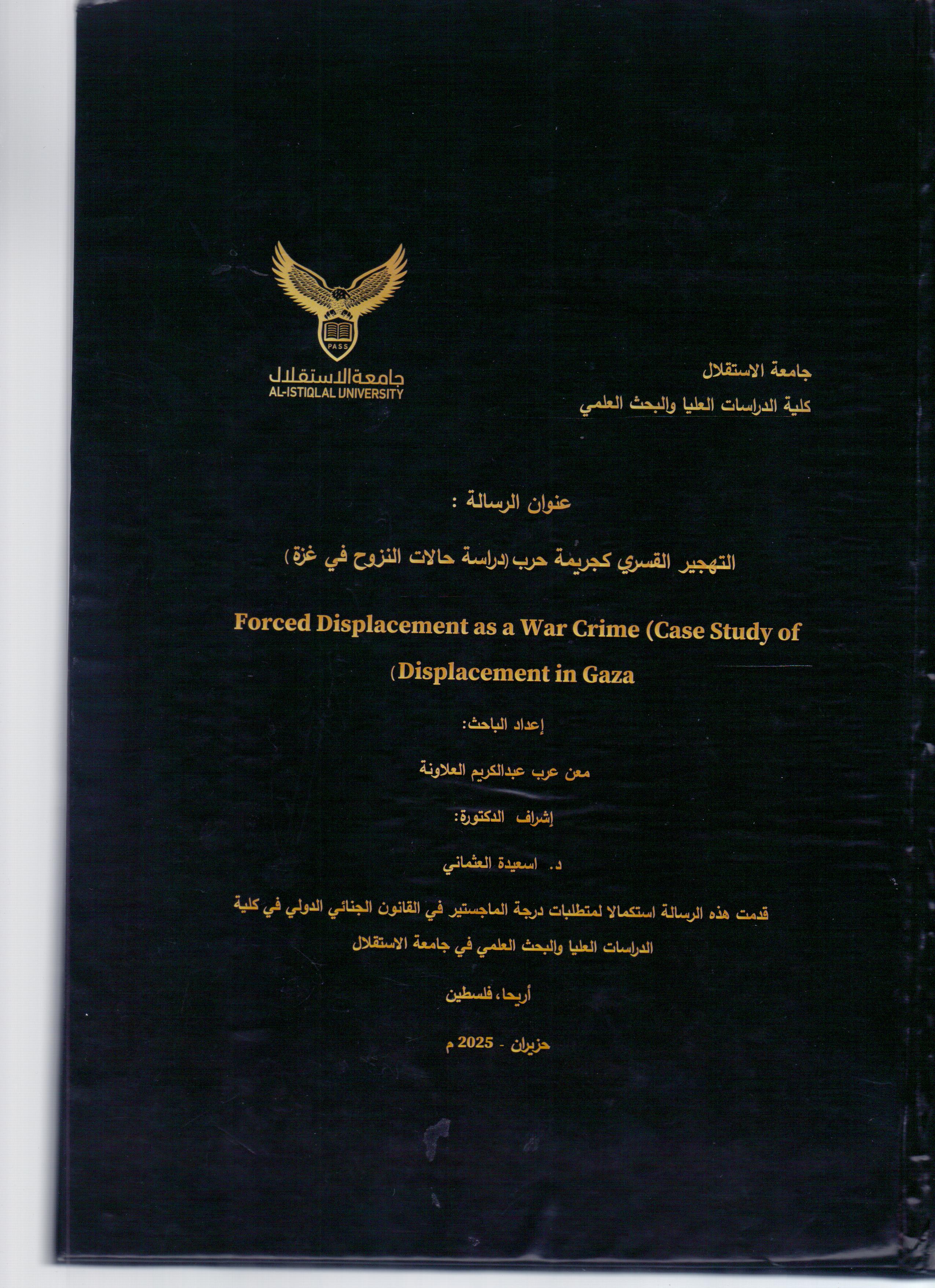 التهجير القسري كجريمة حرب(دراسة حالات النزوح في غزة) ر/341.63/ت ه ج