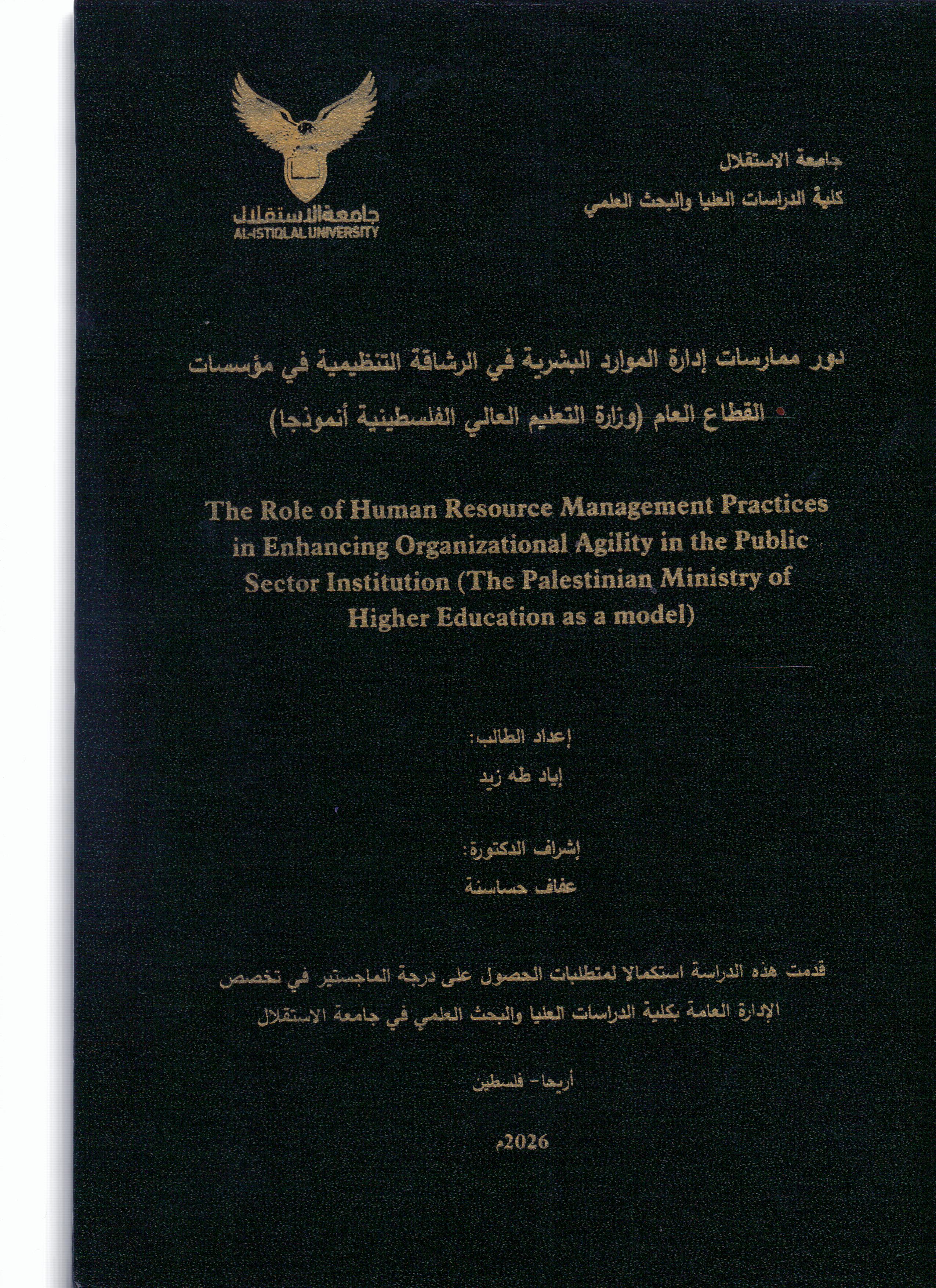 دور ممارسات ادارة الموارد البشرية في الرشاقة التنظيمية في مؤسسات القطاع العام( وزارة التعليم العالي الفلسطينية انموذجا) |