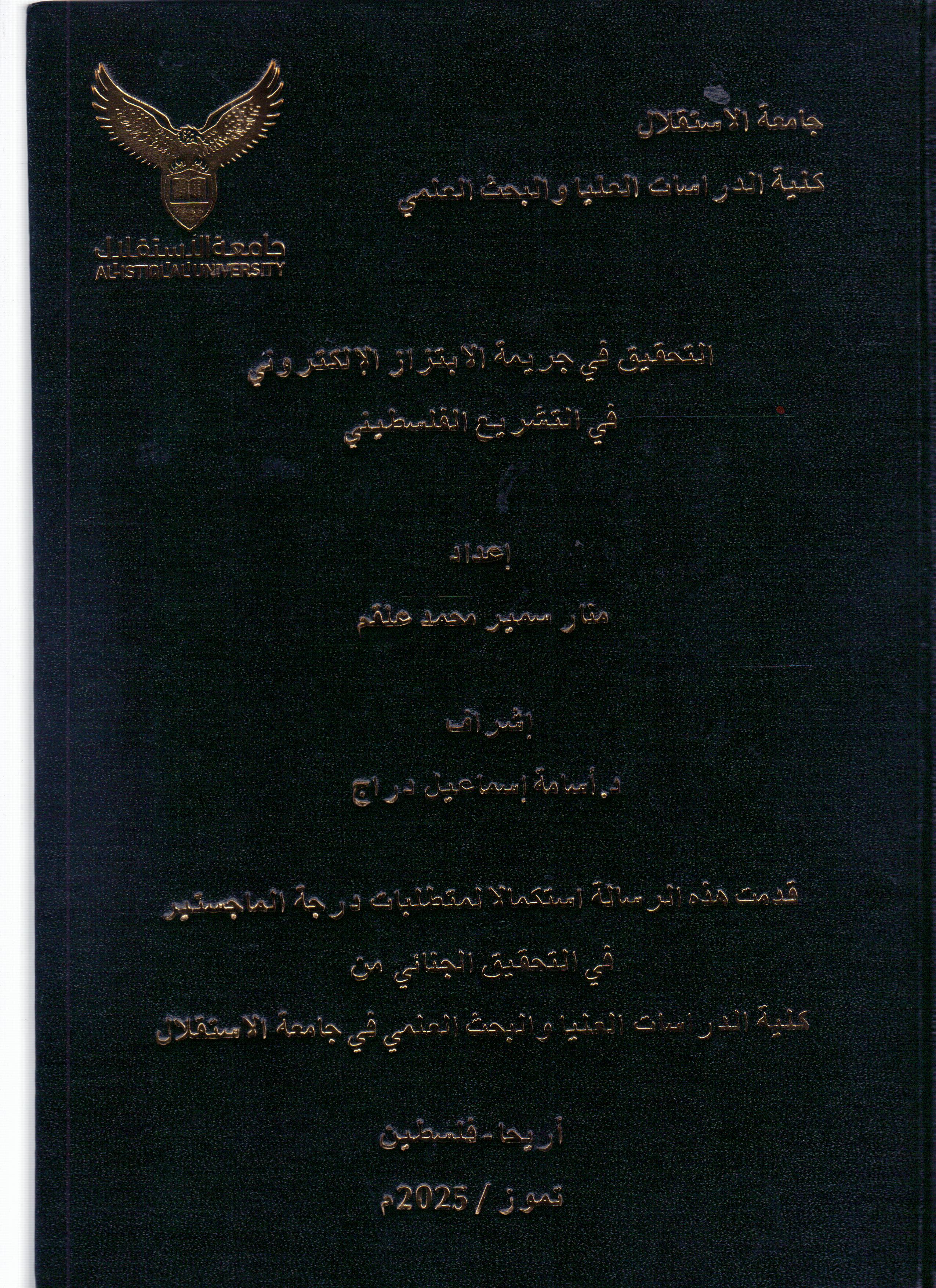 التحقيق في جريمة الابتزاز الالكتروني في التشريع الفلسطيني ر/345.056/ت ح ق